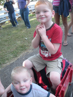 Isaac was wearing a shirt today with a hole right by his belly button.